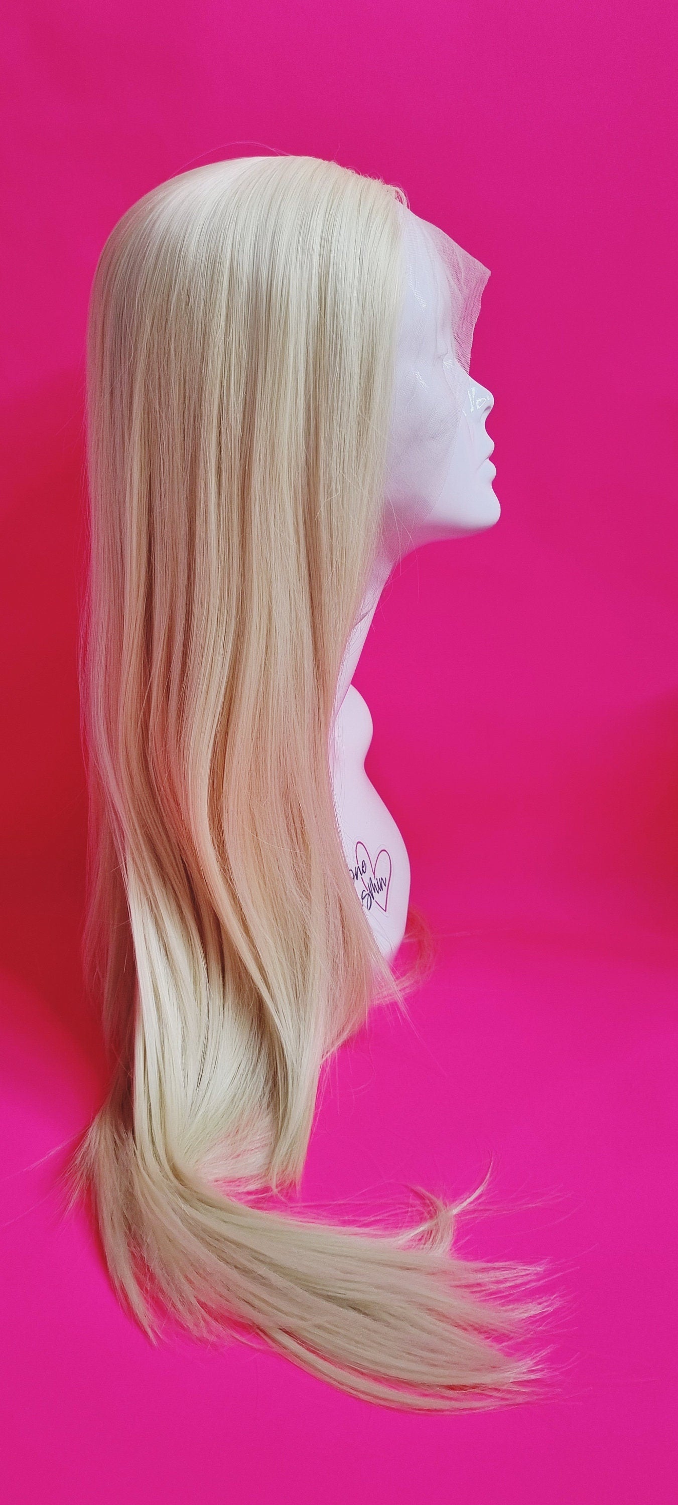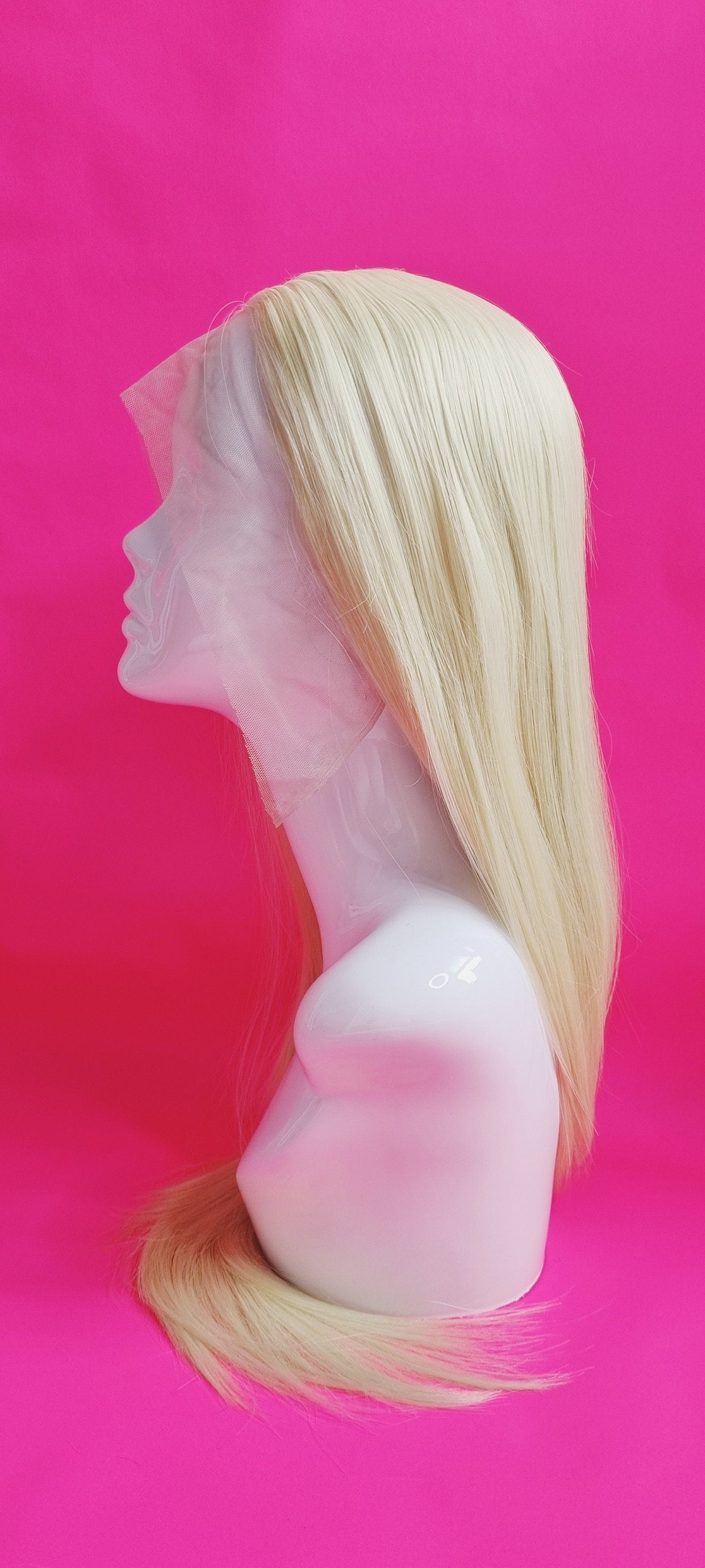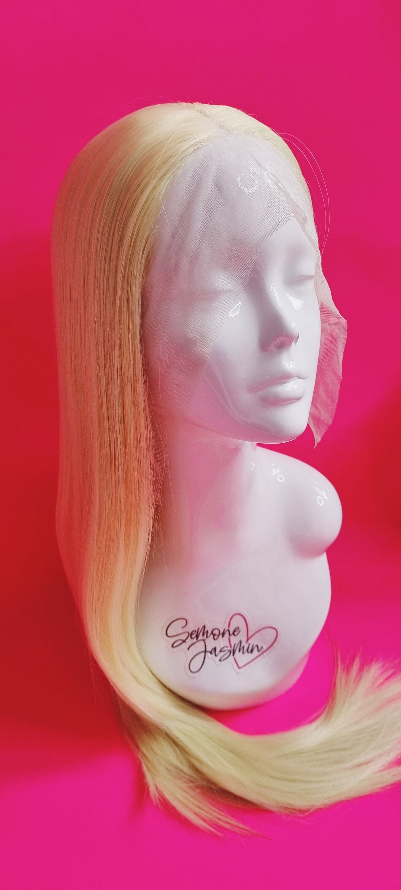Our Miss Slime Lime wig is styled on a 13x3 hand-tied lace front wig and made from synthetic fibers.